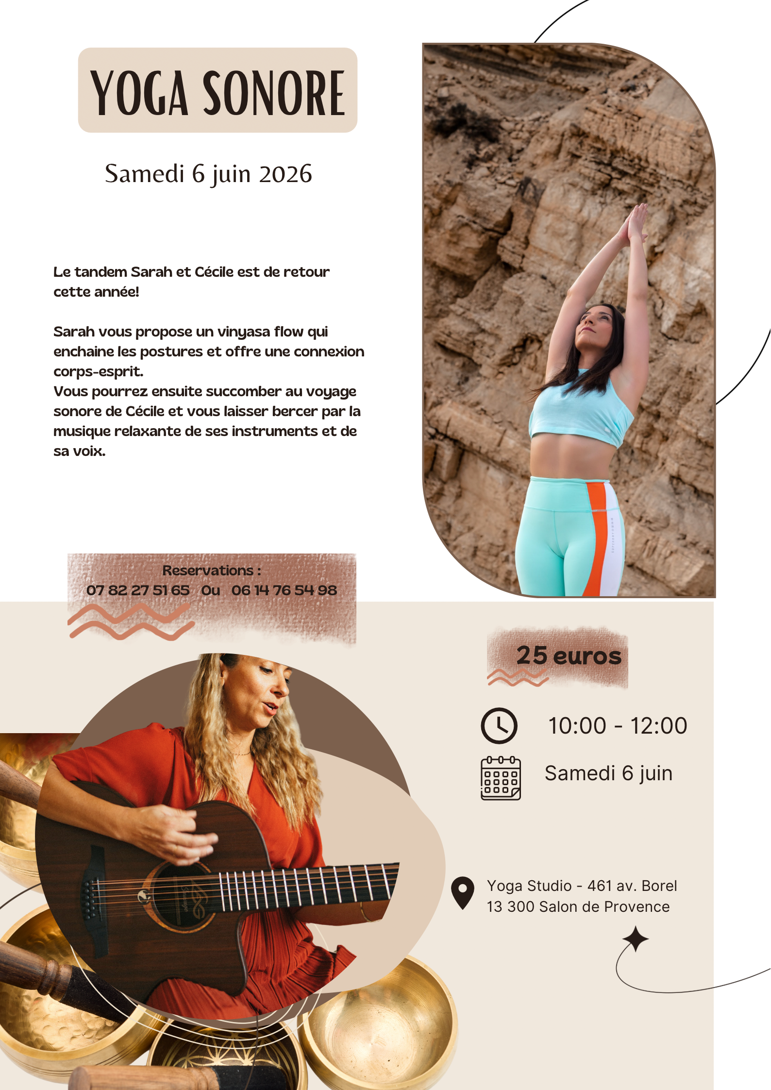 Yoga sonore avec Sarah Maïdi juin 2026 Retrouvez la formule inspirante du Yoga sonore, une expérience unique, entre mouvement et vibration. Sarah vous guidera, avec son sourire Read More